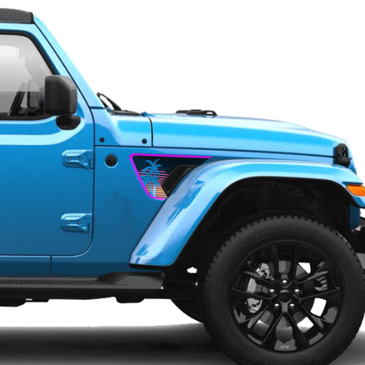 Retro Synth Wave Beach Sunset 2pc Vinyl Fender Decal - Fits Jeep Wrangler JL/Jeep Gladiator JT 2018+