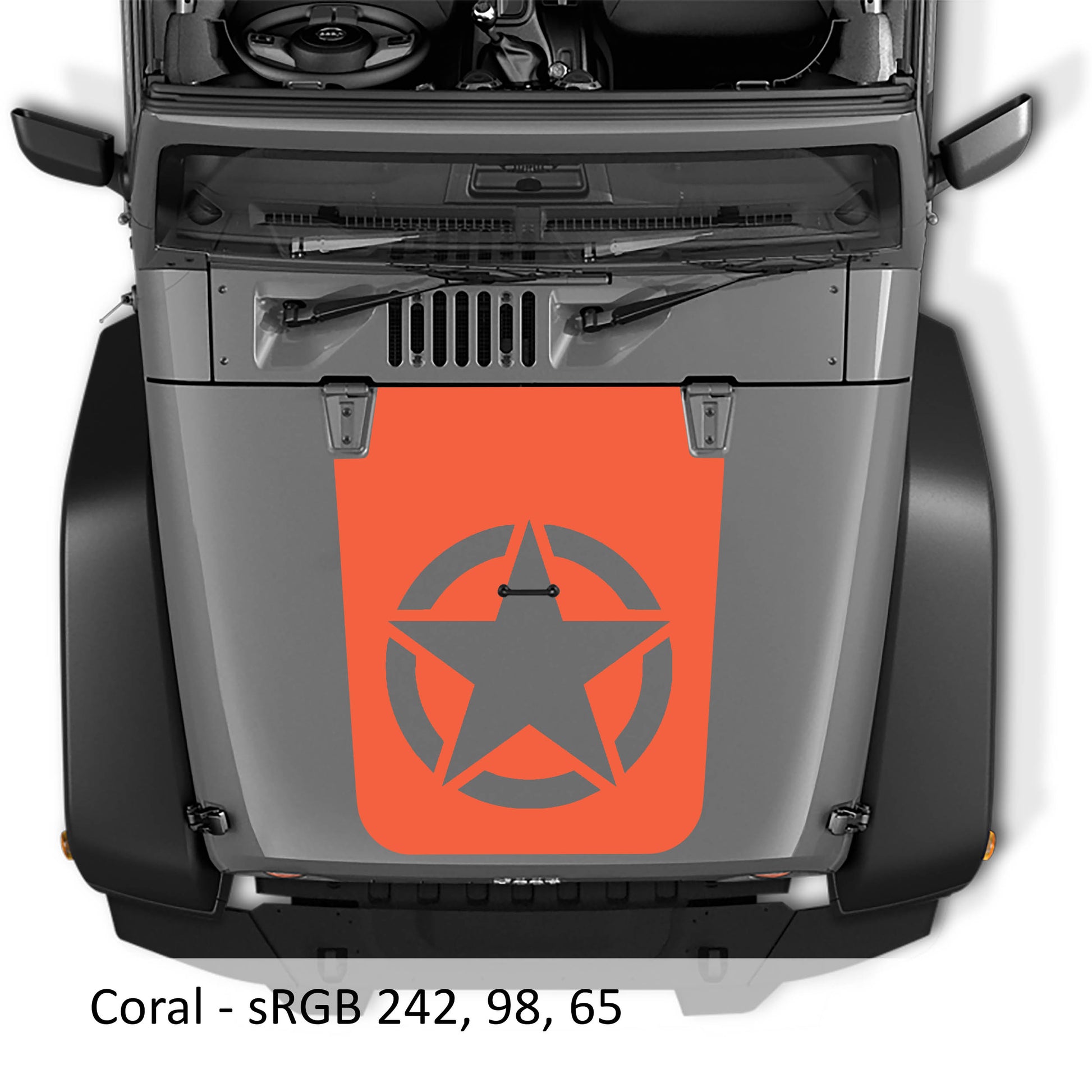 Alpha Romeo Military Star Blackout Hood Vinyl Decal Graphic Fits 2007 - 2017 Jeep Wrangler JK/JKU Models