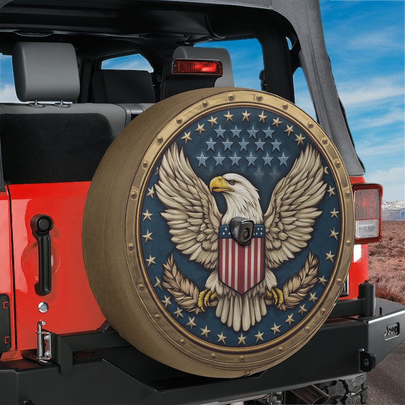 American Freedom Seal Spare Tire Cover With Backup Camera Hole Option
