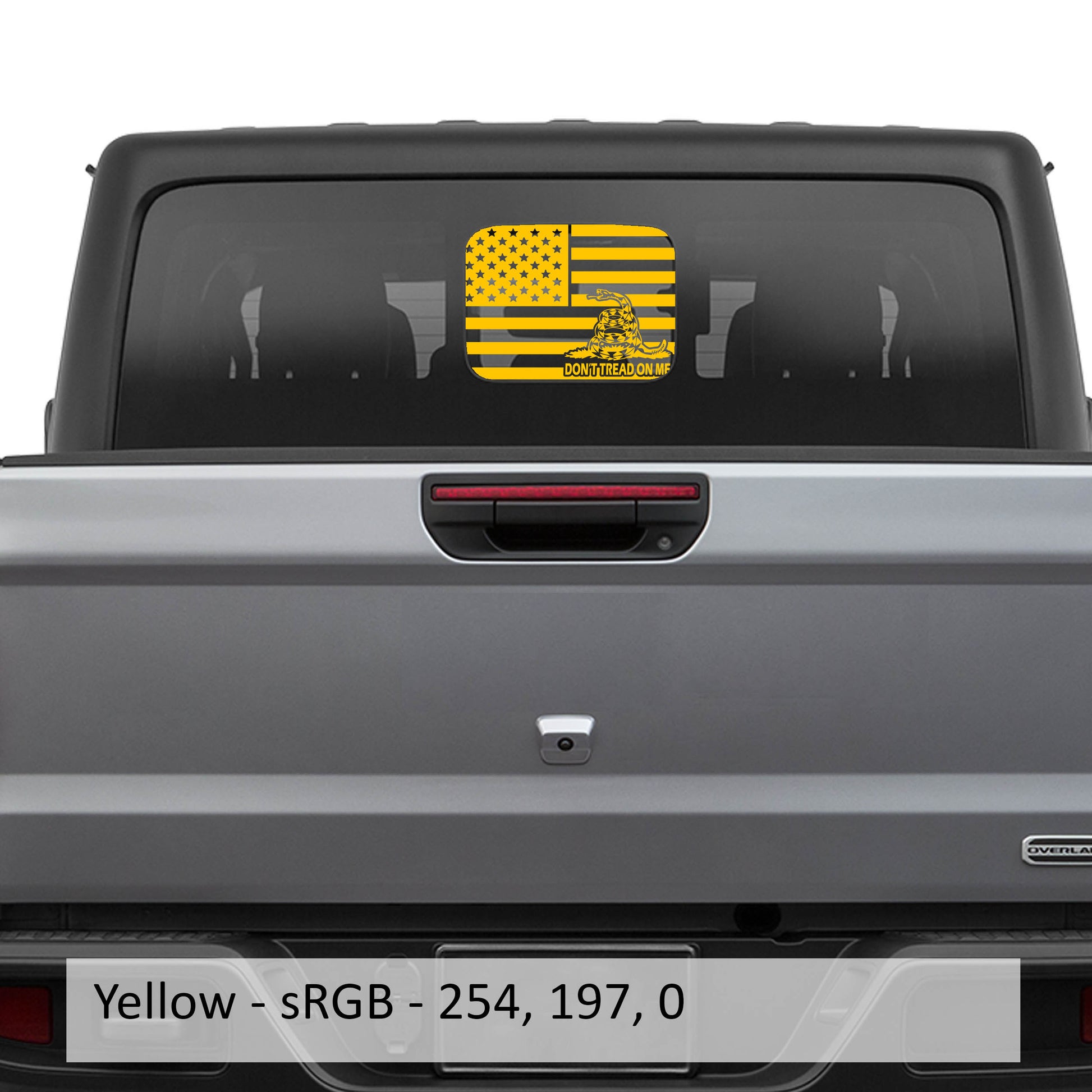 - American Gadsden flag Vinyl Decal Sticker for Rear Slide Down Window.