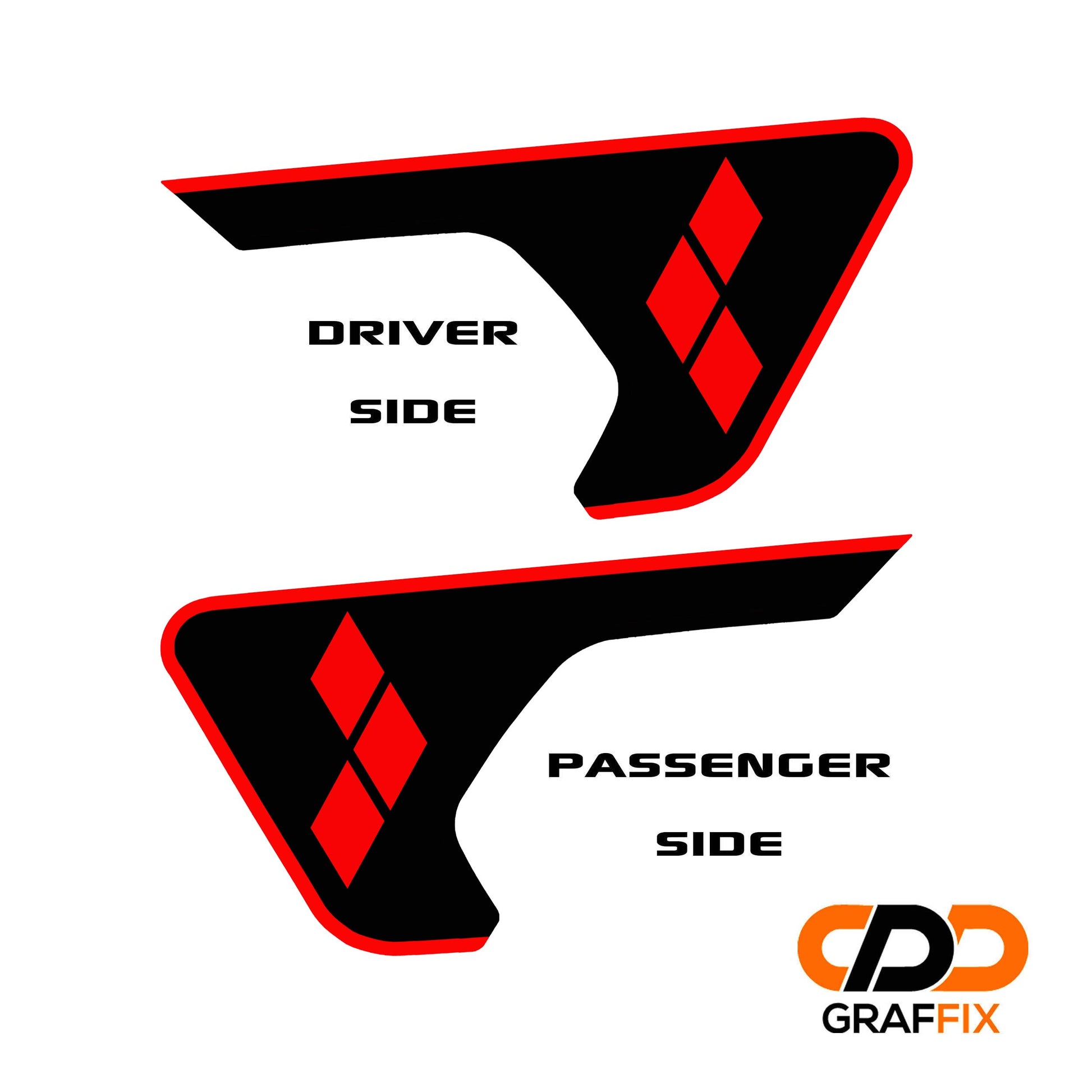 Description: Introducing our Harley Diamond Pattern 2pc Vinyl Fender Decal – a striking way to enhance your Jeep's appearance with a bold and rugged design! Specially crafted for 2018 - Current Jeep Wrangler JL & JLU models and 2020 to current Gladiator JT models, this decal set features a dynamic black and red diamond pattern inspired by the iconic Harley aesthetic.