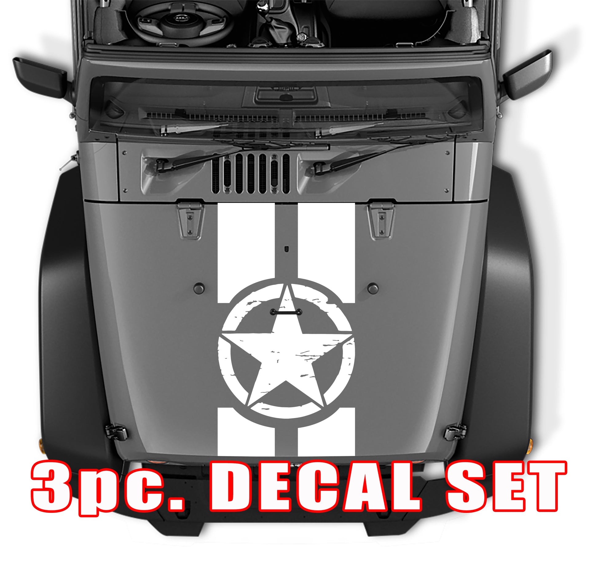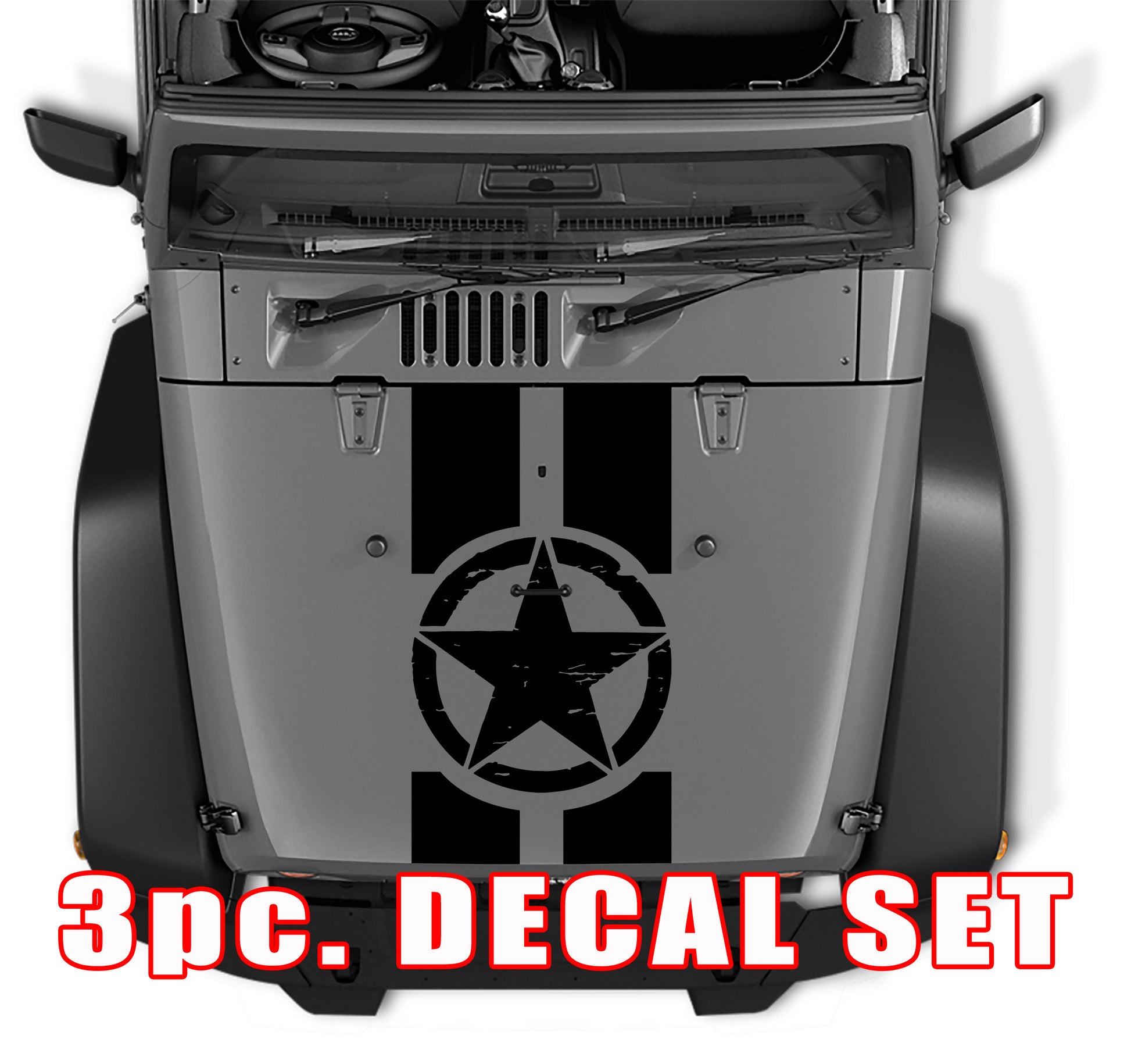 - Distressed Alpha Romeo Military Star Black Out Hood 3 Piece Vinyl Decal Set.