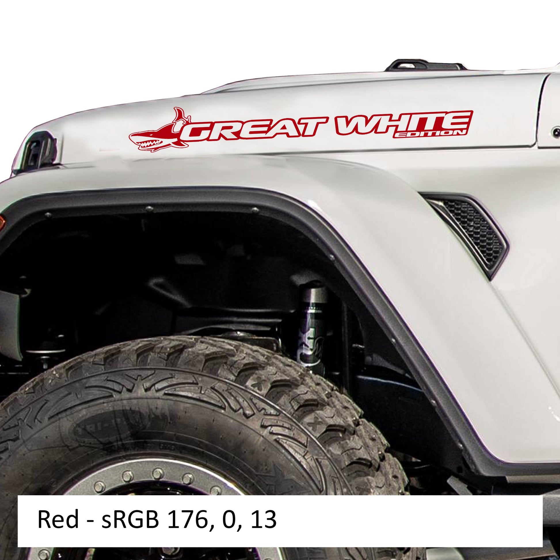 - x2 (Pair) Great White Edition Side Hood Decal Set.