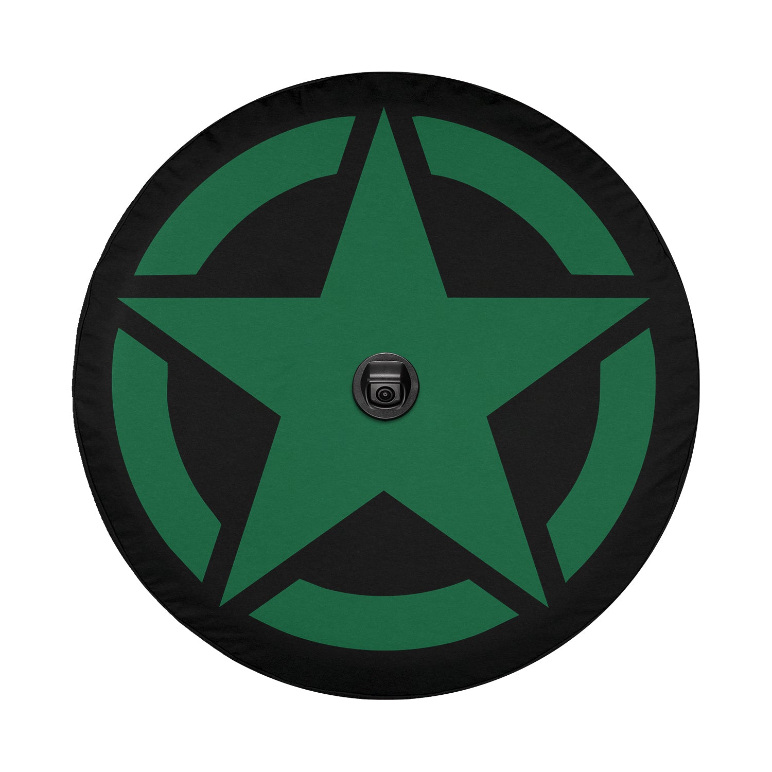 Green Military Star Spare Tire Cover With Backup Camera Hole Option