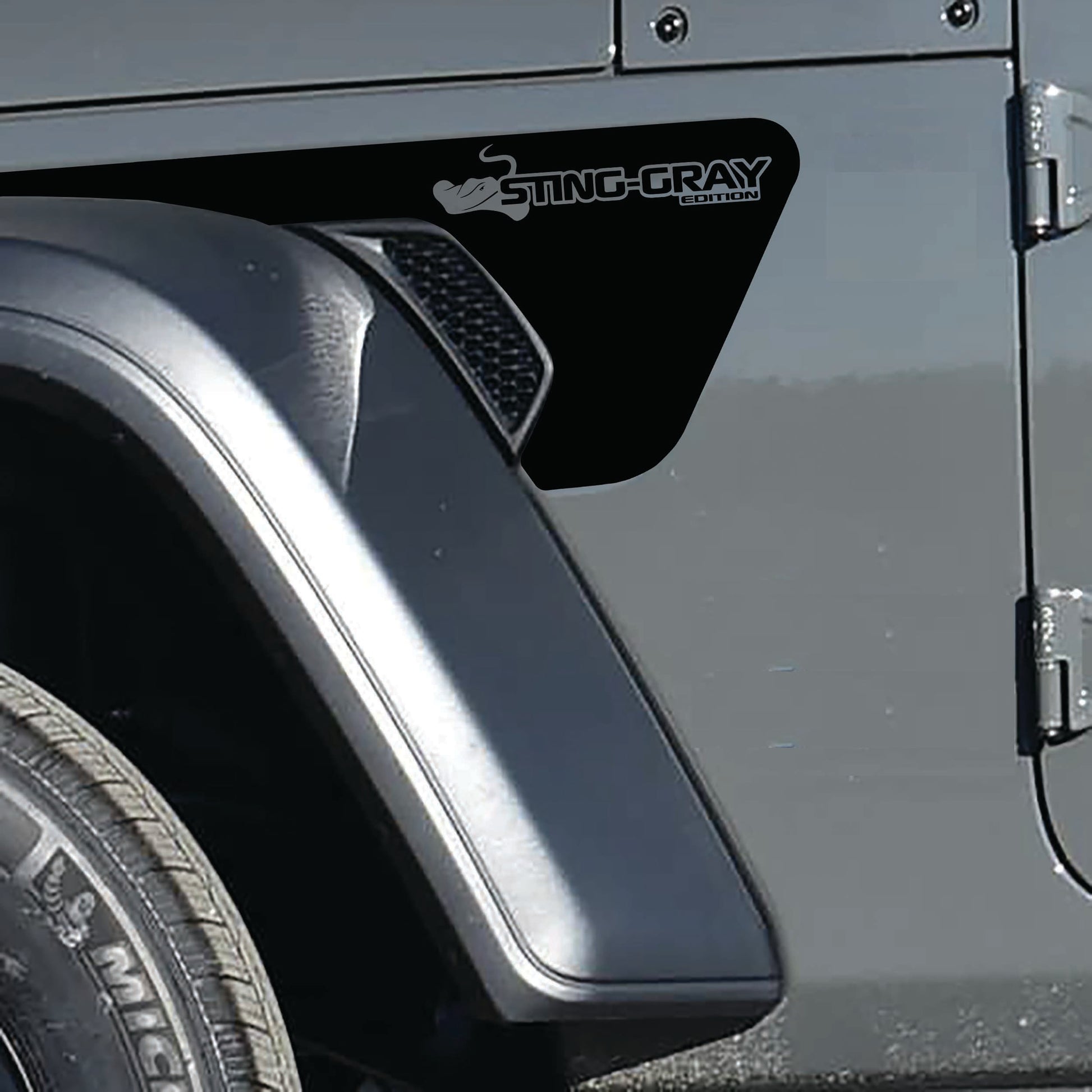 Sting-Gray Edition 2pc Fender Vent Vinyl Transfer Decals for 18+ Wrangler JL JLU Gladiator JT