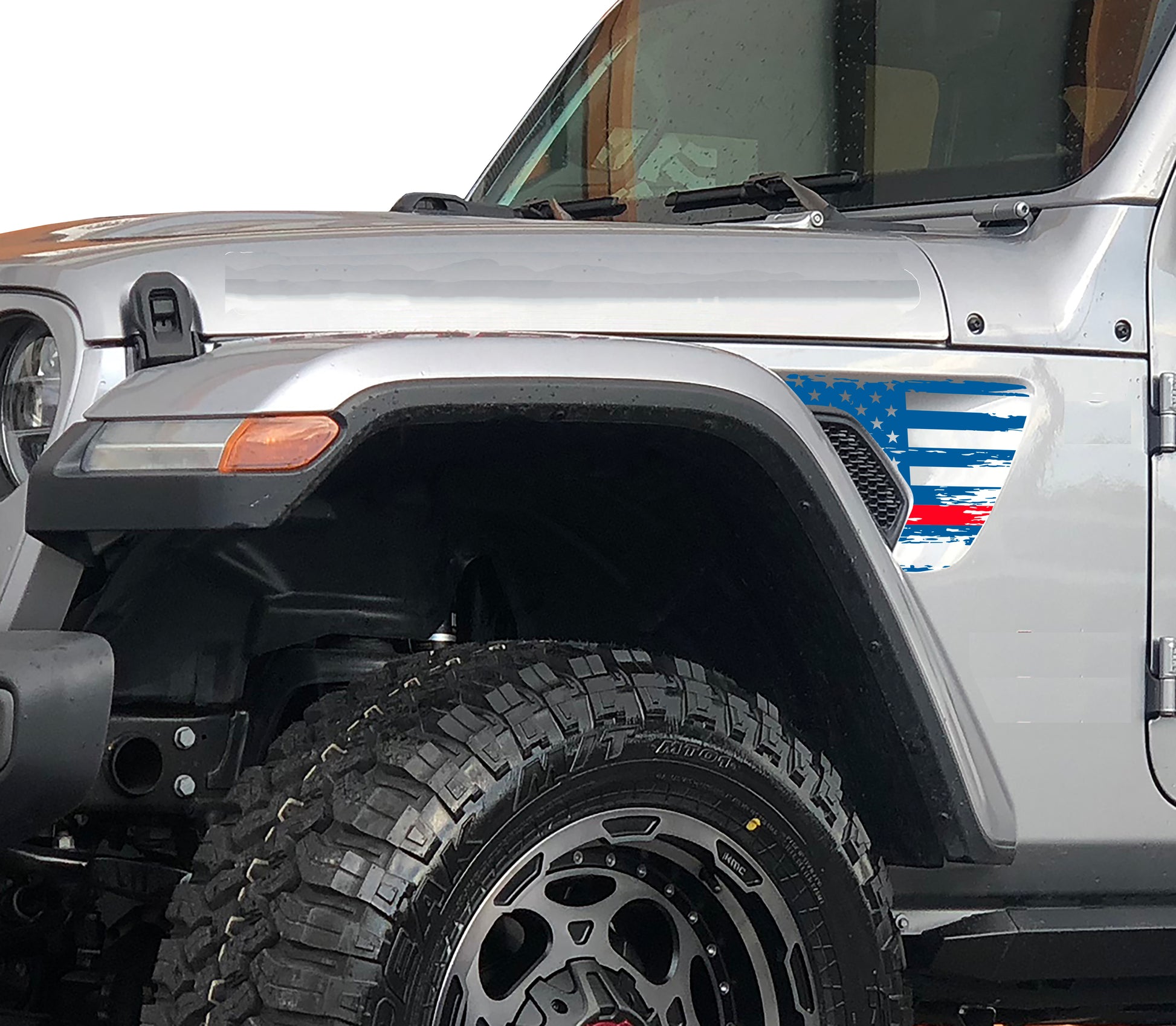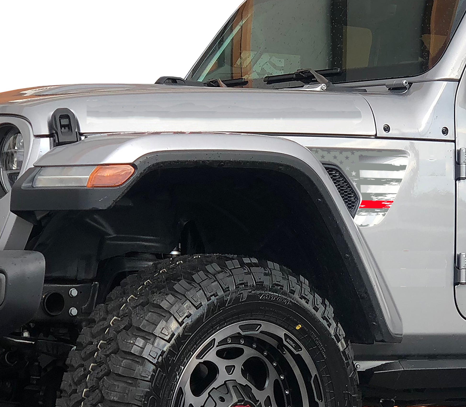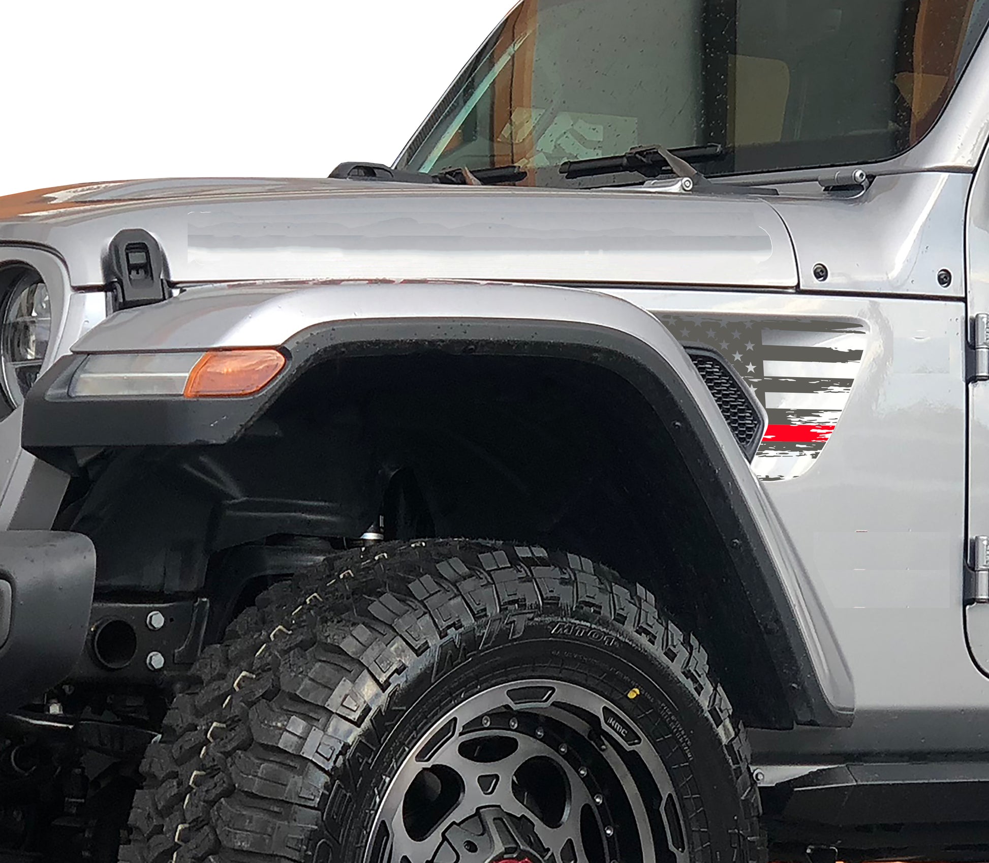 Thin Red Line Distressed American Flag 2pc Fender Vent Vinyl Transfer Decals for Jeep Wrangler JL/Jeep Gladiator JT 2018+