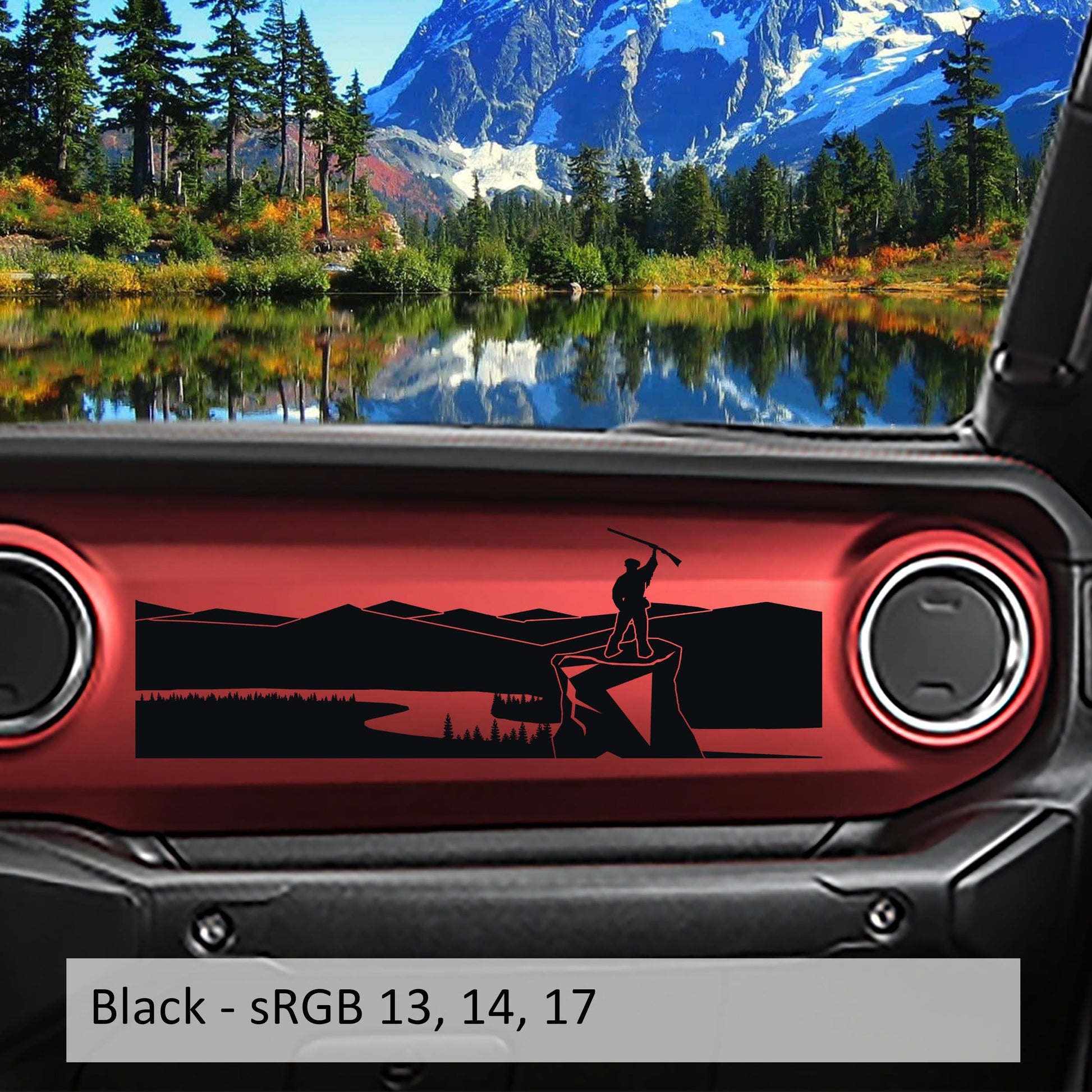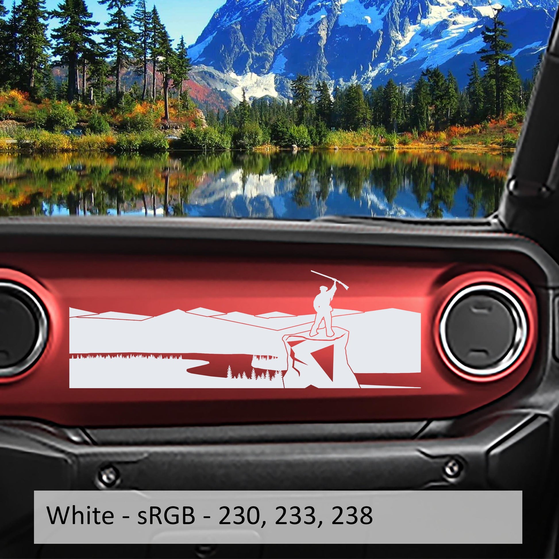 Mountaineer Overlooking River Dashboard Vinyl Decal - Fits 2018+ Jeep Wrangler JL/Jeep Gladiator JT