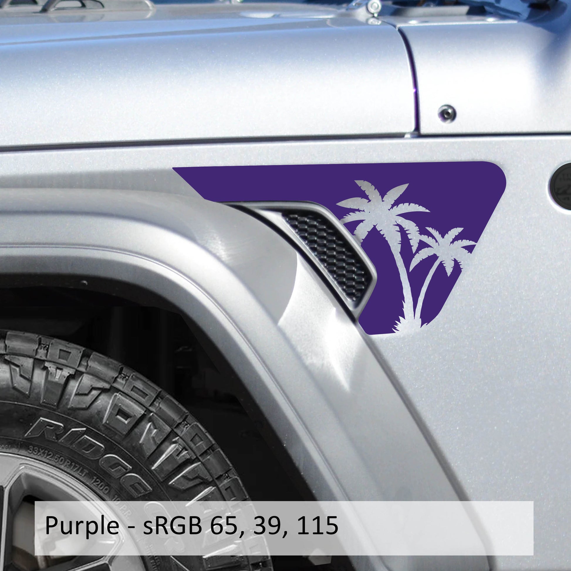 Elevate the look of your Jeep Wrangler JL, JLU (2018—current), or Gladiator JT (2020—current) with our premium Palmetto Palm Tree Fender Vent Vinyl Decals. Designed to withstand the elements, these decals add a personalized touch to your ride, making it truly unique.