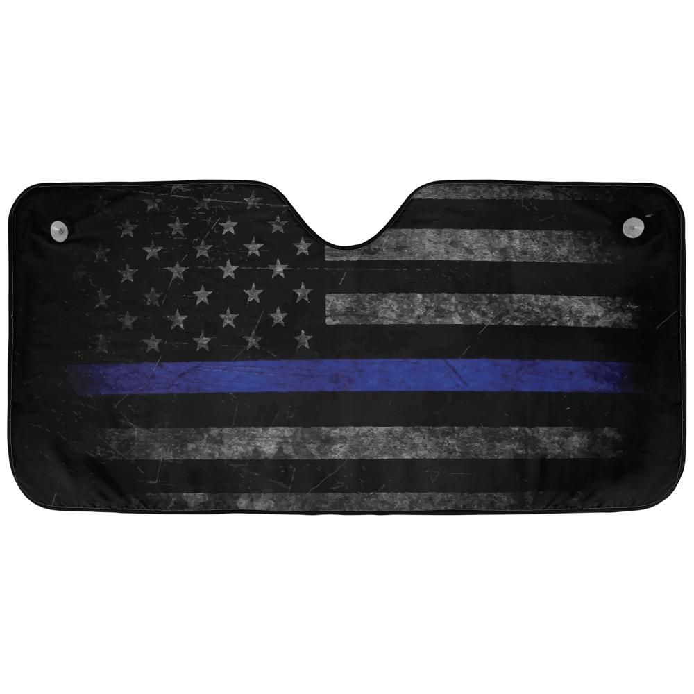 Thin Blue Line Subdued American Flag Car Windshield Cover Sun Shade