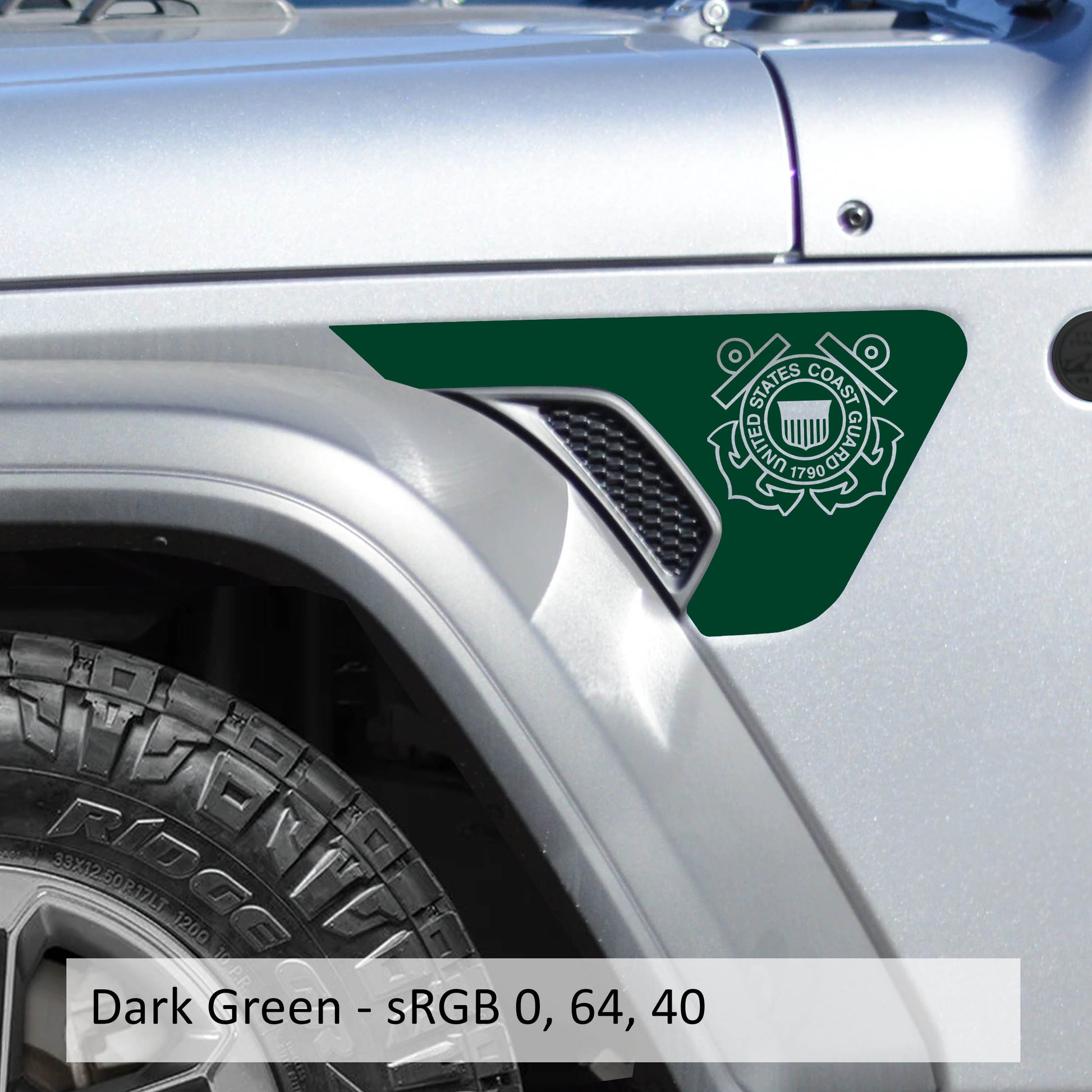 US Coast Guard Fender Vent Vinyl Transfer Decal - Fits Jeep Wrangler JL/Jeep Gladiator JT 2018+