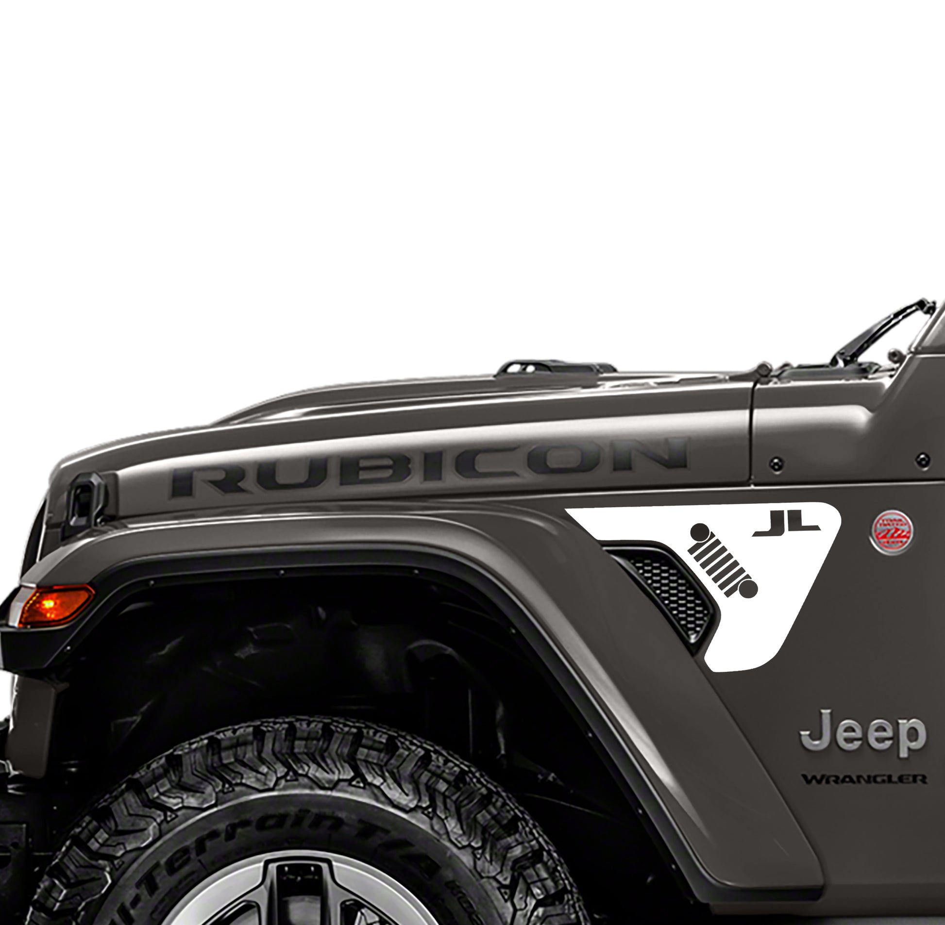 Elevate the look of your Jeep Wrangler JL (2018—current) with our premium JL Lettering with Grille Logo Fender Vent Vinyl Decals. Designed to withstand the elements, these decals add a personalized touch to your ride, making it truly unique.