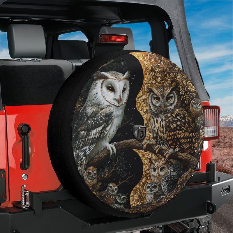 Yin-Yang Owls Spare Tire Cover With Backup Camera Hole